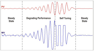 The process performance is monitored, and auto-adaptive tuning will start whenever the performance becomes unsatisfactory. After an adjustment cycle, the controller will start collecting data about the process. This helps it to create a reference, which is used to assess the need for further adjustments. This phase is proportional to the response time of the process.