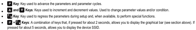 β’ SP/Parameters Display: The Indication screen, in green, displays the SP (Setpoint) value. When in configuration, it shows the values set for the various parameters.