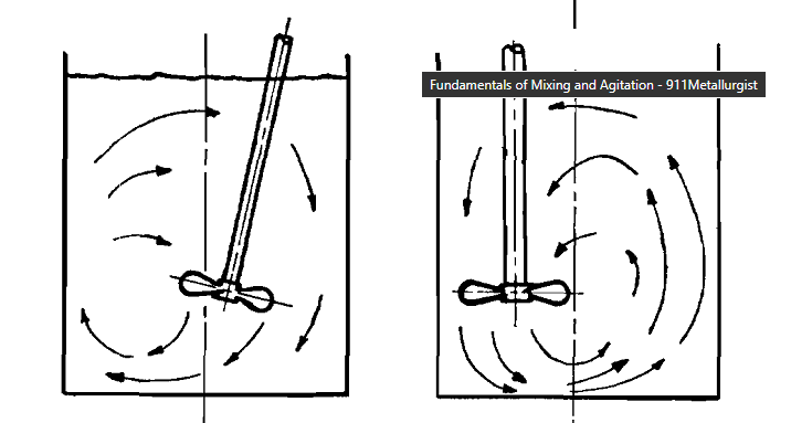 The preferred blade for mechanical mixing is a pitched blade or hydrofoil pushing flow in a down direction and offset to the side.