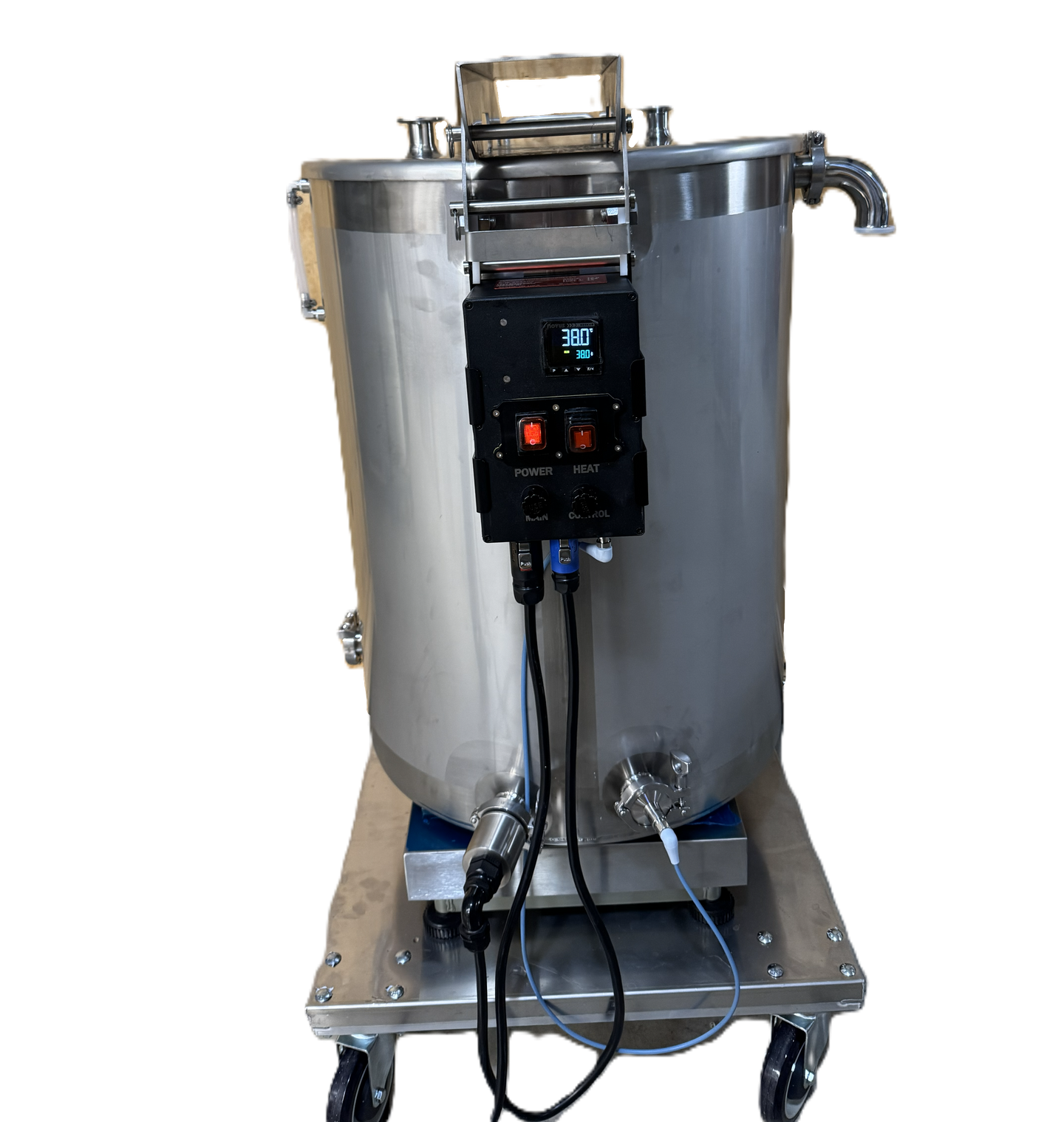 The βHeatβ switch, when turned off will disconnect the vat heater from the power source and prevent the heater from functioning, while allowing operation of the controller such as configuration and temperature measurement. The switch will be illuminated red when the heater is powered on.